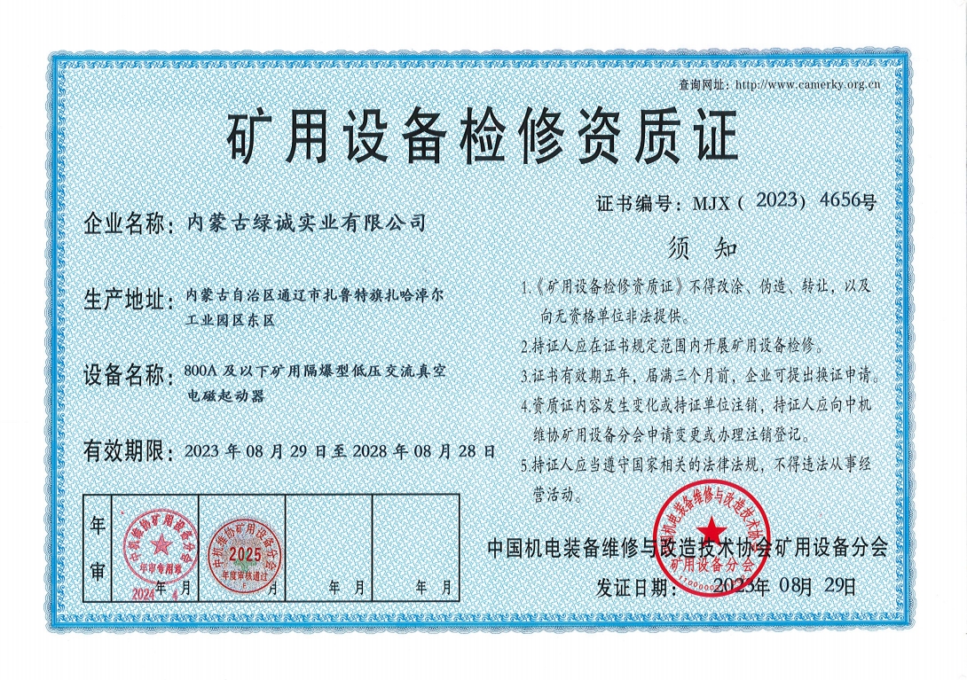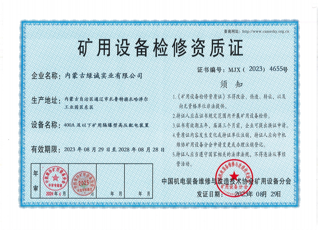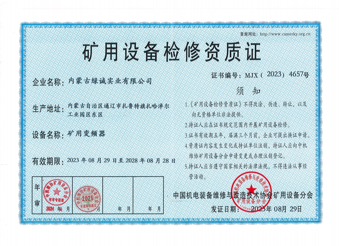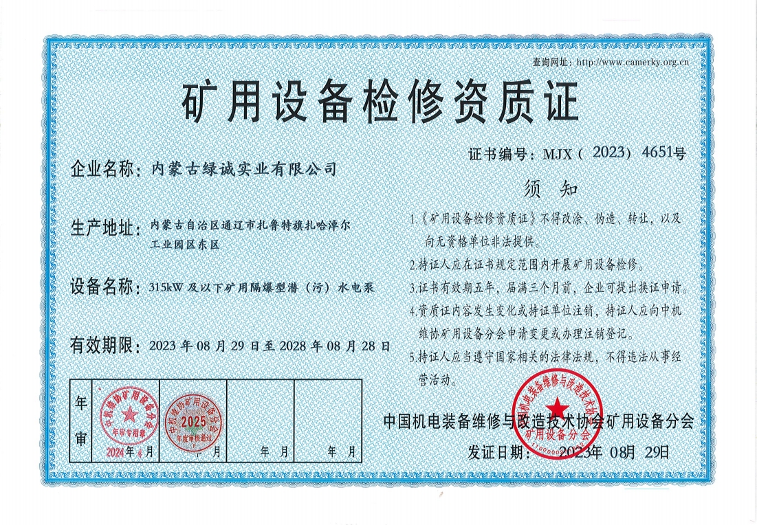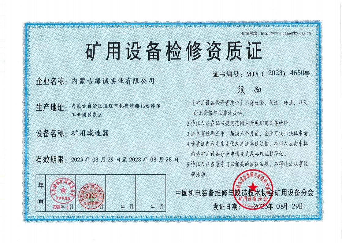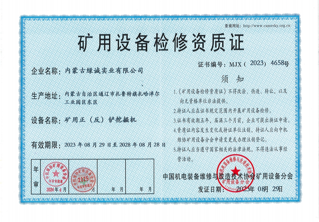 2018年我公司通過中國機電裝備維修與改造技術協(xié)會礦用設備分會審核并取得了9項礦用設備檢修資質(zhì)證書。公司本著“誠信為本 質(zhì)量為先 全心全意為客戶 ”的服務理念,圓滿完成各個廠礦的機械維修及配套服務,期待與您共同合作。